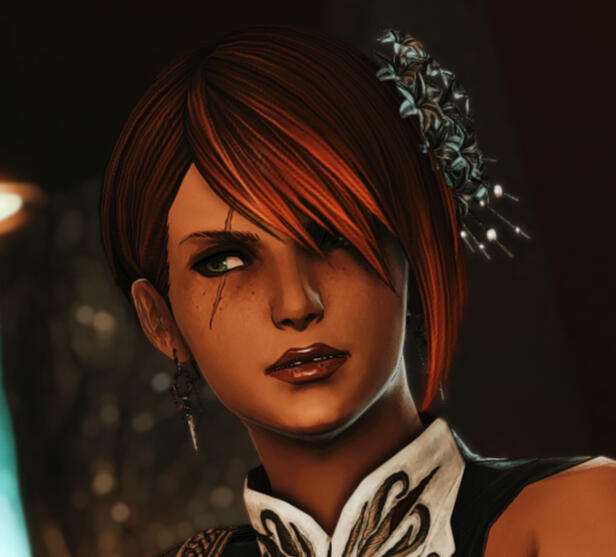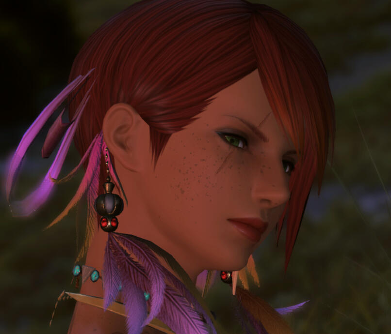 Standing 5'9", Aritria is your average Highlander height. Her body has been broken and honed through her Garlean Empire training, showing the scars of her past. Olive skin sprayed with freckles reflects her heritage through and through, and only deepens in the sun. Her hair is her most distinctive feature, a dark, lush red streaked with orange, though that's not her natural colour. Her body both shows strength and grace, especially when performing on stage for others in her spare time. A smile playing on her lips all the time, be wary if it turns hungry.